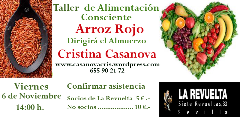 Taller de Alimentación Consciente – Dirigirá el almuerzo Cristina Casanova de Arroz Rojo